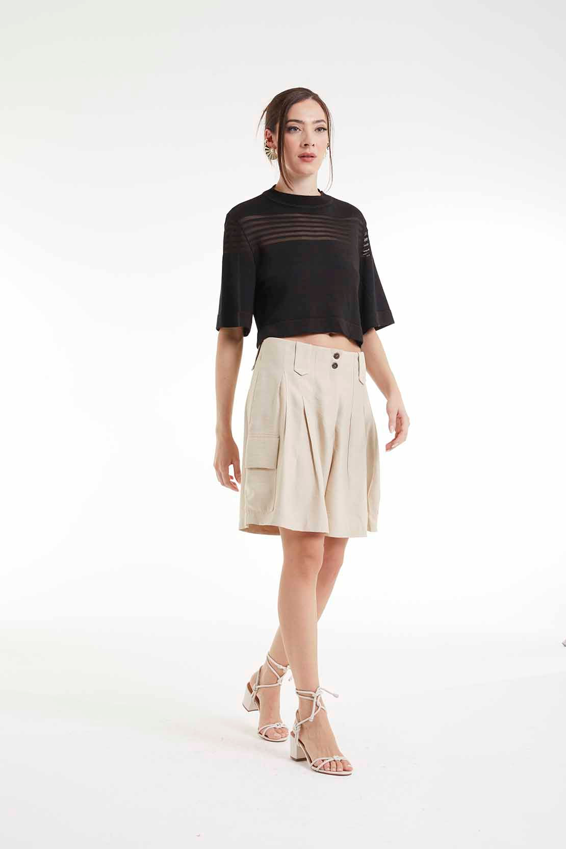 Um verdadeiro best-seller da Amiya, a Bermuda Dim é a união entre praticidade e sofisticação. Com modelagem ampla e pregas frontais que garantem caimento impecável, ela traduz o DNA da alfaiataria contemporânea em uma peça versátil e atemporal.