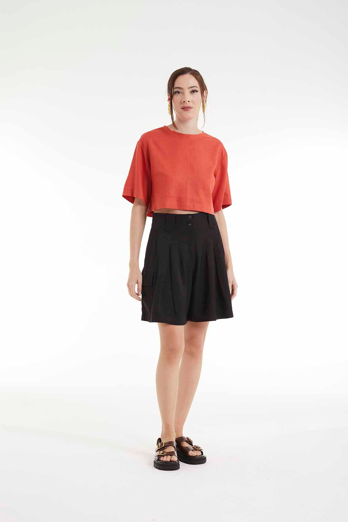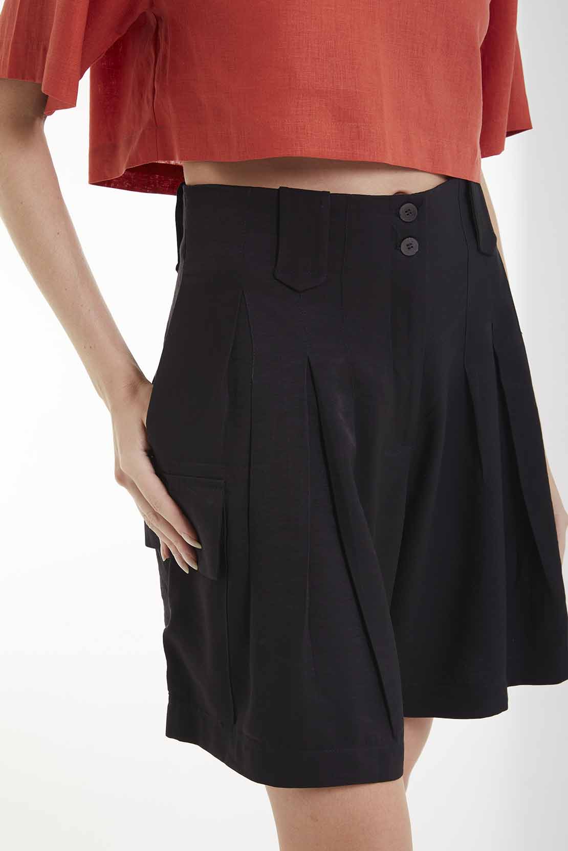 Um verdadeiro best-seller da Amiya, a Bermuda Dim é a união entre praticidade e sofisticação. Com modelagem ampla e pregas frontais que garantem caimento impecável, ela traduz o DNA da alfaiataria contemporânea em uma peça versátil e atemporal.